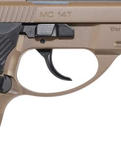 EAA MC 14T 380 Auto (ACP) 4in FDE Stainless Pistol – 13+1 Rounds – The MC 14T Solution by Girsan focuses on ease of use and high capacity in a compact design. Due to the Tip-Up design (no slide racking required) loading and firing the MC 14T is simple and quick, using very minimal moving parts to go from loading to firing. The tip-up barrel feature is primarily being marketed toward those who have difficulties operating the slide on traditional semi-auto handguns. To load a round into the chamber, all one has to do is press the lever on the right side of the frame down to release the barrel, pop a cartridge in and snap the barrel closed.