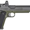 This pistol is built on a forged carbon steel frame and slide, treated with Springfield’s proprietary black Armory Kote finish for corrosion resistance. The 5-inch bull barrel is precision reamed and fitted, contributing to the inherent accuracy of the 10mm cartridge. The Trijicon RMR Type 2 (3.25 MOA adjustable LED) is factory-mounted using a direct-mill interface, co-witnessing with high-profile tritium front and tactical rack rear sights.