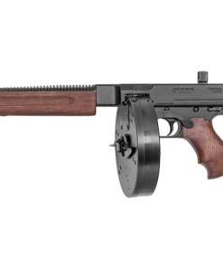 After a long hiatus and great demand, the Thompson Pistol has returned to the market! The Thompson Deluxe Pistol TA5 is lightweight with a 10.5″ barrel length and a walnut, horizontal foregrip. Included with the Thompson TA5 is one of the most famous accessories, the 50 round Drum magazine. The authentic Drum is entirely U.S. manufactured to the specifications that are as close as possible to the original. A 30 round stick, 10 round and 100 round Drum magazine are optional.